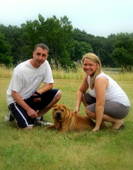 Our story is about our wonderful dog, Rubie. She is a miniature Shar-Pei and almost 3 years old. By nature, Shar-Peis are very dominant dogs and can be aggressive if not socialized properly when they are young. Due to extensive eye surgery at 6 months of age, and for the next 6 months, she was required to wear a protective cone around her head. During this time, she was not supposed to be around other dogs to insure her eyes healed correctly, and she needed to be kept stress- free. Once the cone was off, my fiancé and I immediately signed her up for obedience training at one of the local Petsmart locations.