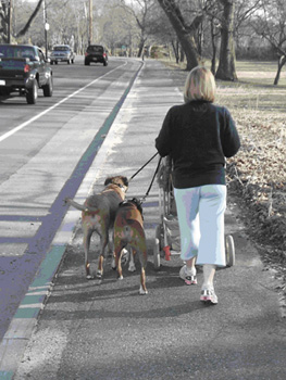 But we continued our work with Scout and began working with Jada, our Boxer. With Terry’s help, Jada and Scout have become much happier dogs. To our continued amazement, Jada isn’t afraid of walking on the street anymore! In fact, I have been stopped by people commenting on my well-behaved dogs while walking with Jada, Scout, and the baby carriage! The “old” Jada would have NEVER walked next to a carriage! Scout has always been good on a leash, but again with Terry’s help, people can now stop and pet my dogs as Jada and Scout will both go into a quiet sit. The “old” Scout would have jumped all over them! Scout has also learned to ignore other dogs as we walk, even if they are on the same side of the street. I often have to tell the other owners how to introduce the dogs properly. Most people just let their dog go right up to my dogs. Jada is OK with that, but Scout is a more selective with regard to whom he’d like to meet.