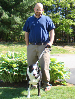 My dog Vinny, a rescue from Tennessee, was adopted at one and a half years of age. He had clearly been neglected, and had also been attacked by another dog. Shortly after settling into his new surroundings, he began to exhibit some problem behaviors. Most concerning was his aggression towards other dogs which made walking him around the neighborhood difficult, and also prevented us from visiting the local dog park. His aggression was so intense that he actually broke a window trying to get to a dog that was being walked by our house. He also had some other behavioral issues such as trying to chase bikes, cars, and trucks, and pulling while on his leash. He has always been very affectionate and great with people, but these aggressive behaviors were overshadowing that.